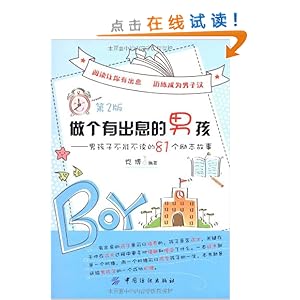 正文语种:简体中文开本:16ISBN:7506472783, 9787506472784条形码:9787506472784商品尺寸:23.6 x 16.8 x 1.8 cm商品重量:399 g品牌:中国纺织出版社ASIN:B004UD7R1I商品描述内容简介望子成龙是天下父母的共同愿望,但男孩怎么做到有出息呢?《做个有出息的男孩:男孩子不能不读的81个励志故事(第2版)》选取了81个开发男孩心智、启发男孩思考的小故事,让男孩在趣味的阅读中对照自我、反思自我、提高自我。也许,这比家长们喋喋不休的说教效果要好得多。同时,《做个有出息的男孩:男孩子不能不读的81个励志故事(第2版)》并不仅仅停留于讲故事,除了阐发对男孩有帮助的道理外,还通过“知识放大点”“学习成长金点子”栏目,对故事中涉及的知识点和与学习、兴趣相关的方面做了进一步的解读。编辑推荐《做个有出息的男孩:男孩子不能不读的81个励志故事(第2版)》: